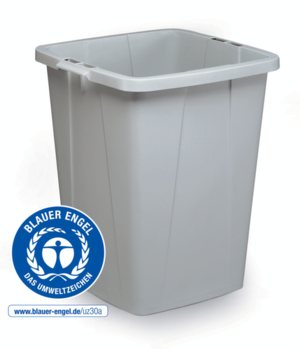 Les principales dimensions de la Durable poubelle DURABIN® ECO en un coup d'œil :à poser au sol. Avec couvercle avec poignée - l’ouverture s’effectue manuellement. fentes de serrage pour la fixation de sac. Vidage facile par couvercle. corps en plastique (recyclé) gris. couvercle en plastique (recyclé) gris. Les poignées situées des deux côtés facilitent le transport. empilable pour gain de place.