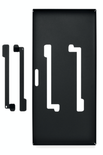 "description": "p. présentoirs à écran, suivant avant, HxlxP 52x468x221mm, av. protection en feutre, insérer, métal, noir",