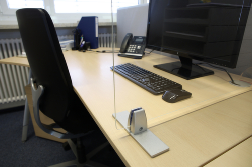"metaDescription": "EICHNER Pince de table pour protection hygiénique - p. protection hygiénique, p. cloison l 2-6mm, Hxl 65x200mm, a. protection caoutchoutée, argent",