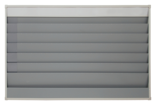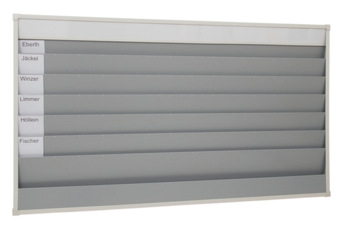 "longDescription": "<h2>Planificateur d'ateliers et de commandes</h2><strong>pour une planification et un contrôle clairs</strong><br><ul><li>Construction robuste avec paroi arrière et cadre</li><li>Extensible - plusieurs éléments peuvent être montés les uns à côté des autres</li><li>Version de 1575 mm de large avec en plus des cartes en carton, un compartiment de rangement et un rail de tête</li></ul><br><h3>Applications possibles :</h3><ul><li>Planification du personnel</li><li>disposition</li><li>documents de travail</li><li>parc automobile</li><li>services de réparation</li><li>et bien plus encore</li></ul><br><h3>Données techniques :</h3><ul><li>bord visible 96 mm </li><li>Profondeur d'insertion 210 mm</li></ul><br>Le planificateur d'atelier de la marque Eichner est le système idéal pour un contrôle clair et parfait de l'atelier. Planifiez vos opérations avec prévoyance et évitez les goulets d'étranglement et les temps morts grâce au planificateur de commandes. Vous réduisez les temps d'arrêt et optimisez ainsi votre service à la clientèle.<br><br>Les rails robustes en polypropylène divisent le planificateur de commandes en 10 ou 15 rangées de planification à remplissage continu. Les fiches cartonnées vous permettent d'étiqueter individuellement chaque rangée de planification et ainsi de la diviser en fonction des employés ou des zones de travail. Une subdivision supplémentaire, par exemple la planification quotidienne selon la répartition du temps, est possible via l'en-tête. Choisissez le planificateur d'atelier qui répond à vos besoins, qu'il s'agisse d'un système étroit à une rangée ou d'un élément de panneau.<br><br><strong>Bon à savoir !</strong><br>Vous avez également besoin des pochettes d'organisation assorties ? Les pochettes d'organisation en plastique sont disponibles en accessoires au format A4. Elles sont rouges ou bleues au choix pour un meilleur classement.<br>",