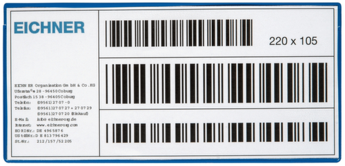"metaDescription": "EICHNER Pochette magnétique pour étiquettes - Hxl 105x220mm, magnétique, PVC, bleu/transparent",