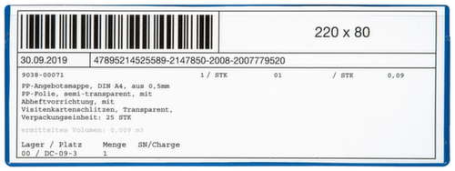 "metaDescription": "EICHNER Pochette magnétique pour étiquettes - Hxl 80x220mm, magnétique, PVC, bleu/transparent",