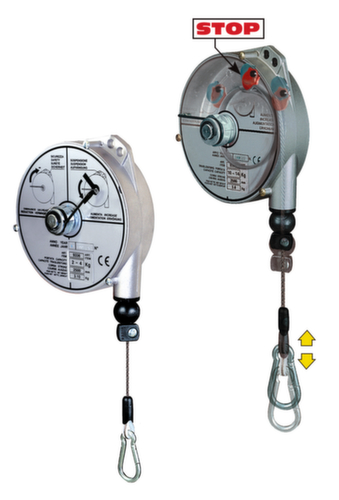 "longDescription": "<h2>Équilibreur à ressort</h2><strong>Capacité de charge jusqu'à 14 kg</strong><br><ul><li>Convient pour les outils, les commandes de grues, les machines de meulage, de polissage ou de rivetage</li><li>Boîtier en aluminium moulé sous pression</li><li>Câble métallique en acier inoxydable</li><li>Douilles lisses et guidage précis du câble</li><li>Avec crochet de sécurité</li><li>Corde supplémentaire comme protection contre les chutes</li><li>Ressort réglable en fonction du poids total avec une clé Allen</li><li>Le dispositif de verrouillage bloque pas à pas lorsqu'on le retire, le déblocage se fait en tirant sur la corde.</li></ul>",