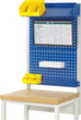 "Ausstattung_Aufbau": "1 kit de fixation avec 2 montants modulaires, 2 plaques perforées, 1 corbeille à courrier en métal inclinable, 1 rail de maintien pour bacs à bec, 1 support pour écran plat",