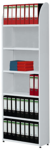 les principales dimensions du du rayonnage de bureau en un coup d’œil :Les dossiers et autres outils de travail sont classés de manière clairement organisée sur 6 niveau(x) avec tablette en acier et sont toujours simples d’accès. utilisation unilatéral - conçu pour un montage mural. paroi arrière plein. structure en bois et acier. corps avec revêtement mélaminé, facile d’entretien en RAL7035 gris clair. niveaux avec finition époxy résistante aux chocs et aux rayures en RAL7035 gris clair. parois latérales avec pieds de nivellement en hauteur pour compenser facilement les inégalités du sol.