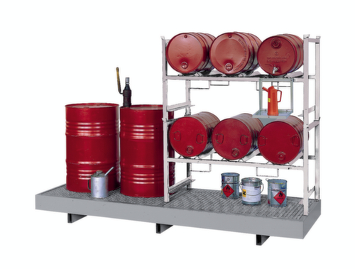 "longDescription": "<h2>Support de soutirage pour fûts et rack gerbable</h2><strong>offres prêtes à l'emploi</strong><br><ul><li>Convient aux substances polluantes pour l'eau et inflammables.</li><li><strong>Anticorrosion et stable</strong> - piètement en acier galvanisé</li><li><strong>Facile à transporter</strong> - avec fourreaux de fourches dès une largeur de 1390mm</li></ul><br><h3>Le choix vous appartient :</h3><ul><li><strong>Offres complètes pratiques ou offres personnalisées</strong> - avec supports-fûts soudés fixes ou tablettes en caillebotis</li><li><strong>Bacs de rétention adaptés</strong> - au choix comme bac de rétention à insérer, à poser ou à combiner</li></ul><br><strong>Bac de rétention à poser</strong><br><ul><li><strong>Exploitation du volume de rétention complet</strong> - avec caillebotis amovible et galvanisé à chaud</li><li><strong>Bonne stabilité</strong> - caillebotis avec rebord sur lequel le rayonnage gerbable est vissé</li><li><strong>Convient pour le transport par gerbeur</strong> grâce à la garde au sol pratique</li></ul><br><strong>Dispositions légales</strong><br>Construction des bacs de rétent. agréée par les autorités. Pour le stockage abrité de produits dangereux pour l’eau, inflammables (point d’inflammation > 55 °C) et agressifs.<br>",