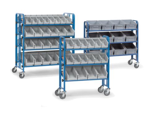 "metaDescription": "fetra Chariot à étagères avec tablettes et bacs inclinables - Force max. 300 kg, en différentes tailles",