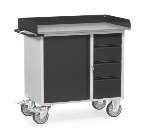 "value": "2 roulettes pivotantes, 2 roulettes fixes"