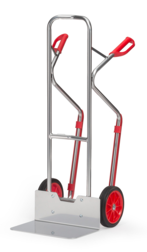 La pelle peut être vissée et donc remplacée. Ainsi, en cas d’endommagement, il n’est pas nécessaire de remplacer l’ensemble de l’appareil de manutention. structure en aluminium (soudé). avec poignée de sécurité. roues avec bandage caoutchouc plein sur jante plastique. Ø de roue 260 mm. moyeu avec roulement à rouleaux.