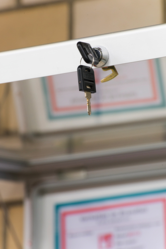 "longDescription": "<h2>Vitrine d'exposition</h2><strong>pour un usage intérieur et extérieur</strong><br><ul><li>Cadre en aluminium, anodisé argent, avec coins en plastique gris.</li><li>Tableau avec surface en liège ou en tôle d'acier peinte, magnétique, pouvant être essuyé à sec.</li><li>Porte avec cadre en aluminium, serrure cylindrique avec 2 clés, vitre en verre de sécurité trempé (ESG).</li><li>Profondeur intérieure/extérieure 32/45 mm</li></ul><br>Toujours à jour !<br><br>Le nouveau plan de roulement pour vos employés, le menu hebdomadaire à la cantine, les activités à venir de l'association, les règlements importants dans l'atelier ... L'information nous entoure partout. <br><br>Avec un présentoir dans un endroit central, la distribution de l'information est facile. <br><br>La boîte d'information FRANKEN convient pour un montage mural simple en format portrait ou paysage. La seule chose importante est que le présentoir soit monté à hauteur des yeux pour attirer un maximum d'attention.<br><br>Changez simplement<br><br>Selon la manière dont vous souhaitez présenter vos informations ou vos annonces, vous pouvez choisir entre les différents panneaux arrière. La vitrine est disponible avec une surface en liège ou en feutre pour les épingles ou avec une surface en tôle d'acier peinte pour écrire dessus ou pour la fixer avec des aimants. Tout type de note, qu'elle soit permanente ou qu'elle change rapidement, peut être facilement rendue visible.<br><br>Sécurité totale<br><br>La boîte d'information FRANKEN peut également être utilisée à l'extérieur. Vous pouvez donc également choisir l'emplacement qui correspond le mieux à vos besoins. La vitrine robuste résiste aux intempéries et protège vos avis des influences extérieures. Bien entendu, la boîte d'information, avec son cadre léger en aluminium anodisé argenté, fait également bonne figure à l'intérieur.<br><br>La porte à charnière verrouillable protège l'intérieur contre tout accès non autorisé et fait du changement de notice un jeu d'enfant. La façade en verre de sécurité simple et les coins arrondis en plastique protègent également contre les accidents.<br><br><strong>Bon à savoir !</strong><br>Vous êtes contraint d'installer votre guichet unique dans un couloir étroit ? Dans notre assortiment, vous trouverez aussi des vitrines d'affichage ultra plates ou des vitrines d'affichage avec porte coulissante.<br>",