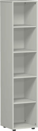 les principales dimensions du Gera du Gera rayonnage pour classeurs Milano Milano en un coup d’œil :Espace de rangement facilement accessible pour les dossiers et documents de travail sur 5 hauteurs de classeur. 4 niveau(x) avec sol en bois réglables selon vos besoin par pas de 32 mm. construction en bois avec revêtement mélaminé, facile d’entretien. corps en gris clair. niveaux en gris clair. soubassement avec pieds de réglage de hauteur pour une adaptation variable aux sols irréguliers, par ex. bords de tapis.