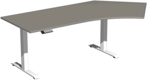 convient pour pour le bureau, l'administration ou les établissements éducatifs. Le bureau d'angle à réglage électrique de la hauteur brille par sa combinaison inégalée de flexibilité d'un bureau d'angle avec les atouts d'un poste de travail debout ou avec siège.