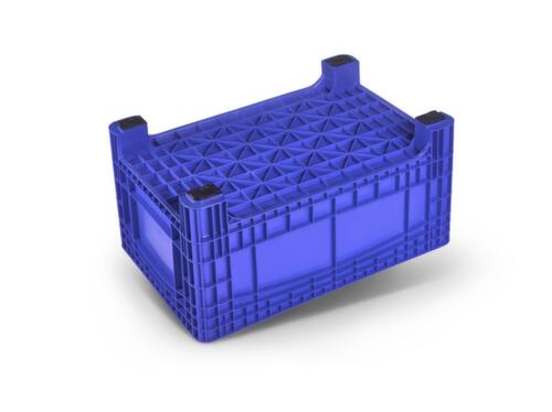 dimensions adaptées aux palettes européennes. en polyéthylène résistant aux chocs en bleu. La marchandise se stocke à l’abri de la poussière grâce aux parois fermées et le récipient se nettoie facilement, avec nervures de renfort. Le fond est fermé pour faciliter le nettoyage avec renfort grâce à rainures de renfort. 4 pieds garantissent un support stable. résistant à la température de -40 °C à +60 °C.