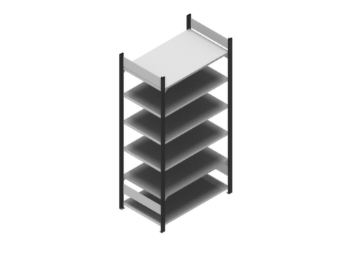 rayonnage de base avec 2 échelles, traverses raidisseuses et plateaux conf. à l’offre