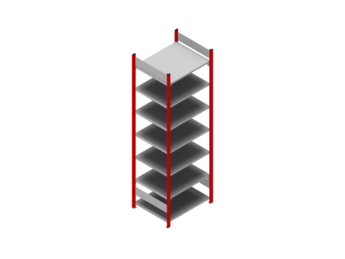 rayonnage de base avec 2 échelles, traverses raidisseuses et plateaux conf. à l’offre
