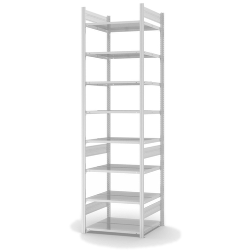 les principales dimensions du hofe du hofe rayonnage sans boulons en un coup d’œil :Vous pourrez organiser au mieux vos dossiers, classeurs et autres outils de bureau sur 8 niveau(x) avec tablettes en tôle d’acier / 8 hauteurs de classeur. niveaux avec rebord antichute central emboîtable et rebord de tablette latéral du niveau supérieur pour éviter les chutes de classeurs. hauteurs de compartiments réglables par pas de 25 mm selon l’usage prévu et vos besoins. utilisation bilatéral - possibilité d’installation flexible librement dans la pièce. Stabilité élevée grâce aux traverses de raidissement. structure en acier. montants galvanisé avec revêtement en plastique en RAL7035 gris clair. niveaux galvanisé avec revêtement en plastique en RAL7035 gris clair.