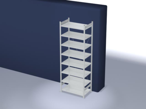 rayonnage de base avec 2 échelles, traverses raidisseuses et plateaux conf. à l’offre