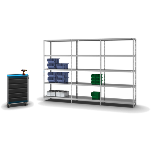 rayonnage de base avec 4 montants, plateaux conf. à l’offre