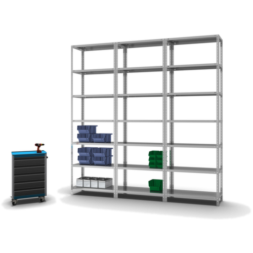 rayonnage de base avec 4 montants, plateaux conf. à l’offre