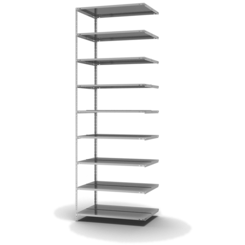 rayonnage suivant avec 2 montants, plateaux conf. à l’offre