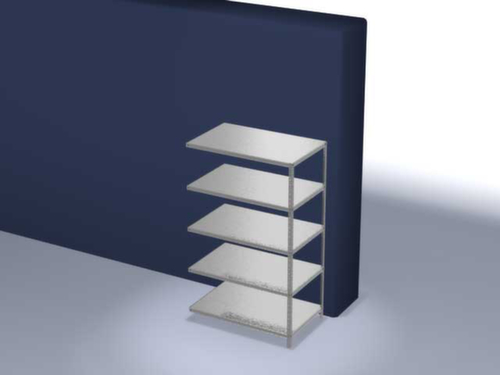 les principales dimensions du hofe rayonnage de stockage en un coup d’œil :5 niveaux avec tablette en acier. 3 pliages de sécurité de 40 mm de hauteur et avec des coins pleins garantissent un degré élevé de stabilité et de protection contre les blessures. hauteurs de compartiments réglables par pas de 25 mm selon l’usage prévu et vos besoins. utilisation unilatéral - conçu pour un montage mural. structure en acier, montants avec revêtement en zinc anti-corrosion, niveaux avec revêtement en zinc anti-corrosion.