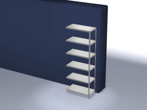 les principales dimensions du hofe rayonnage de stockage en un coup d’œil :6 niveaux avec tablette en acier. 3 pliages de sécurité de 40 mm de hauteur et avec des coins pleins garantissent un degré élevé de stabilité et de protection contre les blessures. hauteurs de compartiments réglables par pas de 25 mm selon l’usage prévu et vos besoins. utilisation unilatéral - conçu pour un montage mural. structure en acier, montants avec revêtement en zinc anti-corrosion, niveaux avec revêtement en zinc anti-corrosion.