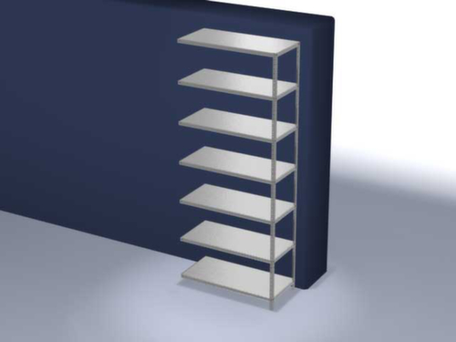 les principales dimensions du hofe rayonnage de stockage en un coup d’œil :7 niveaux avec tablette en acier. 3 pliages de sécurité de 40 mm de hauteur et avec des coins pleins garantissent un degré élevé de stabilité et de protection contre les blessures. hauteurs de compartiments réglables par pas de 25 mm selon l’usage prévu et vos besoins. utilisation unilatéral - conçu pour un montage mural. structure en acier, montants avec revêtement en zinc anti-corrosion, niveaux avec revêtement en zinc anti-corrosion.