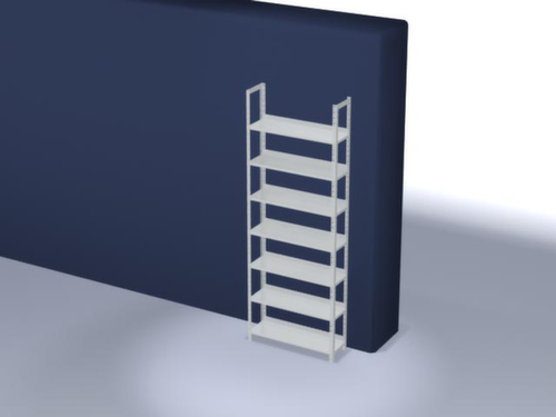 les principales dimensions du hofe rayonnage pour classeurs en un coup d’œil :7 niveau(x) avec tablettes en tôle fine de qualité, sans plateau de recouvrement / 7 hauteurs de classeur pour 84 classeurs. niveaux avec rebord antichute et rebord de tablette latéral du niveau supérieur (sans entretoises supplémentaires) pour empêcher la chute de classeurs et assurer une stabilité inégalée dans les sens de la longueur et de la profondeur, pliage de sécurité comme protection contre les blessures. utilisation unilatéral - conçu pour un montage mural. structure en acier, montants galvanisé avec revêtement en plastique en RAL7035 gris clair, niveaux galvanisé avec revêtement en plastique en RAL7035 gris clair.