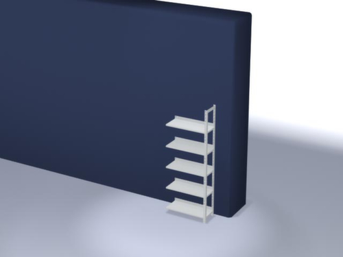 les principales dimensions du hofe rayonnage pour classeurs en un coup d’œil :5 niveau(x) avec tablettes en tôle fine de qualité, sans plateau de recouvrement / 5 hauteurs de classeur pour 45 classeurs. niveaux avec rebord antichute et rebord de tablette latéral du niveau supérieur (sans entretoises supplémentaires) pour empêcher la chute de classeurs et assurer une stabilité inégalée dans les sens de la longueur et de la profondeur, pliage de sécurité comme protection contre les blessures. utilisation unilatéral - conçu pour un montage mural. structure en acier, montants galvanisé avec revêtement en plastique en RAL7035 gris clair, niveaux galvanisé avec revêtement en plastique en RAL7035 gris clair.