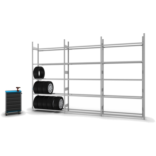Les principales dimensions du hofe rayonnage à pneus en un coup d’œil :5 niveaux avec profilés de traverses spéciaux pour un stockage respectueux des pneus. hauteurs de compartiments réglables par pas de 25 mm selon l’usage prévu et vos besoins. utilisation unilatéral - conçu pour un montage mural. structure en acier. montants avec revêtement en zinc anti-corrosion. traverses avec revêtement en zinc anti-corrosion.