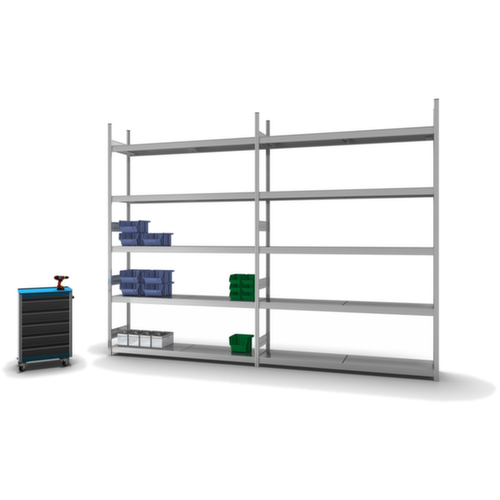 rayonnage suivant. système emboîtable - pour montage simple et sans outils. convient pour pour marchandises encombrantes.