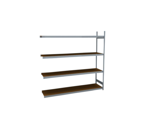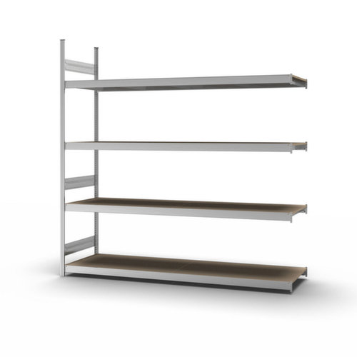 Les principales dimensions du hofe rayonnage grande largeur en un coup d’œil :4 niveaux avec sol en bois. niveaux avec renfort par poutres. hauteurs de compartiments réglables par pas de 25 mm selon l’usage prévu et vos besoins. utilisation unilatéral - conçu pour un montage mural. Les tôles de liaison en profondeur et les embases en acier confèrent une excellente stabilité au rayonnage. Les caches profilés supérieurs assurent une finition soignée. structure en acier, montants avec revêtement en zinc anti-corrosion, traverses avec revêtement en zinc anti-corrosion.