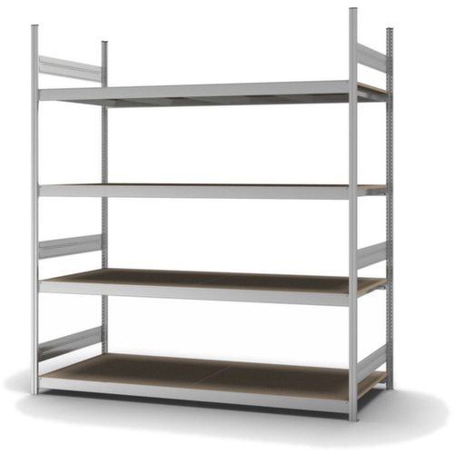 Les principales dimensions du hofe rayonnage grande largeur en un coup d’œil :4 niveaux avec sol en bois. niveaux avec renfort par poutres. hauteurs de compartiments réglables par pas de 25 mm selon l’usage prévu et vos besoins. utilisation unilatéral - conçu pour un montage mural. Les tôles de liaison en profondeur et les embases en acier confèrent une excellente stabilité au rayonnage. Les caches profilés supérieurs assurent une finition soignée. structure en acier, montants avec revêtement en zinc anti-corrosion, traverses avec revêtement en zinc anti-corrosion.