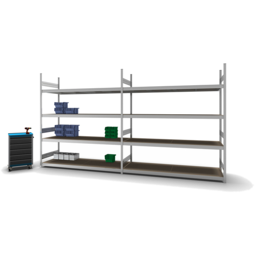 rayonnage départ. système emboîtable ORION PLUS – montage rapide ; toutes les tablettes peuvent être utilisées sans outil, de manière variable et à tout moment.