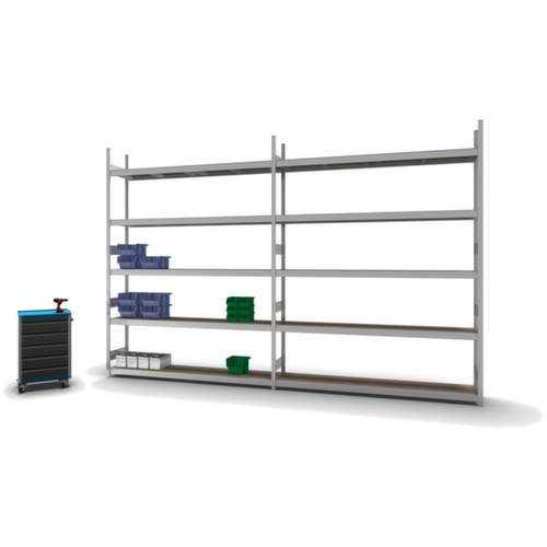 rayonnage départ. système emboîtable ORION PLUS – montage rapide ; toutes les tablettes peuvent être utilisées sans outil, de manière variable et à tout moment.