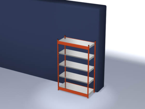 les principales dimensions du hofe rayonnage de stockage en un coup d’œil :5 niveaux avec tablette en acier. niveaux avec pliage de sécurité comme protection contre les blessures. 3 pliages de sécurité de 40 mm de hauteur garantissent un degré élevé de stabilité et de protection contre les blessures. hauteurs de compartiments réglables par pas de 50 mm selon l’usage prévu et vos besoins. angle d'installation droit. utilisation bilatéral - exploitation optimale de l’espace et plus d’espace de rangement, car installation libre dans la pièce. Stabilité élevée grâce aux traverses longitudinales. structure en acier, montants avec revêtement en plastique résistant à l’usure en RAL2004 orangé pur, niveaux avec revêtement en zinc anti-corrosion.