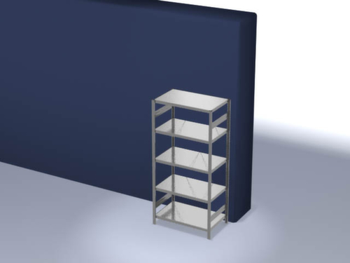 les principales dimensions du hofe rayonnage de stockage en un coup d’œil :5 niveaux avec tablette en acier. hauteurs de compartiments réglables par pas de 25 mm selon l’usage prévu et vos besoins. angle d'installation droit. utilisation bilatéral - possibilité d’installation flexible librement dans la pièce. Stabilité élevée grâce aux traverses de raidissement. Les tôles de liaison en profondeur et les embases en acier confèrent une excellente stabilité au rayonnage. Les caches profilés supérieurs assurent une finition soignée. structure en acier, montants avec revêtement en zinc anti-corrosion, niveaux avec revêtement en zinc anti-corrosion.