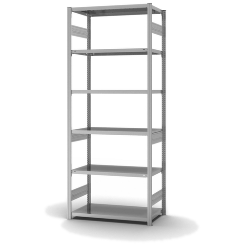 les principales dimensions du hofe rayonnage de stockage en un coup d’œil :6 niveaux avec tablette en acier. hauteurs de compartiments réglables par pas de 25 mm selon l’usage prévu et vos besoins. angle d'installation droit. utilisation bilatéral - possibilité d’installation flexible librement dans la pièce. Stabilité élevée grâce aux traverses de raidissement. Les tôles de liaison en profondeur et les embases en acier confèrent une excellente stabilité au rayonnage. Les caches profilés supérieurs assurent une finition soignée. structure en acier, montants avec revêtement en zinc anti-corrosion, niveaux avec revêtement en zinc anti-corrosion.
