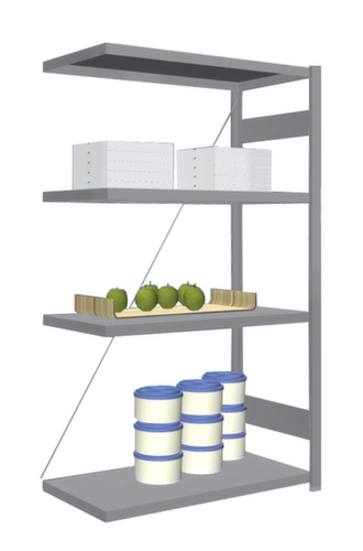 rayonnage suivant avec 2 montants, plateaux conf. à l’offre