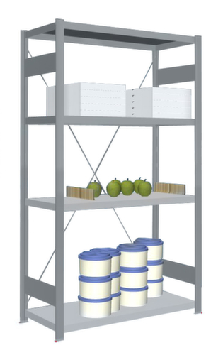 rayonnage de base avec 4 montants, plateaux conf. à l’offre