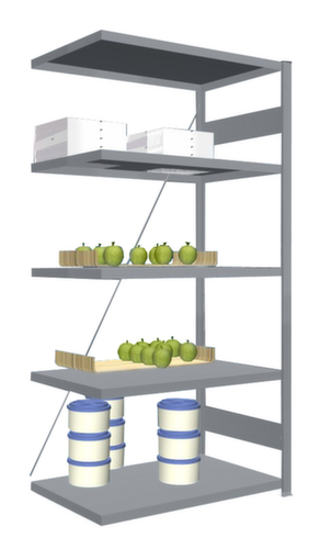 rayonnage suivant avec 2 montants, plateaux conf. à l’offre