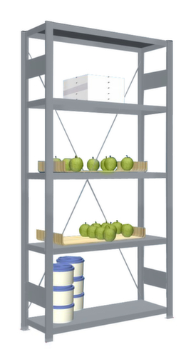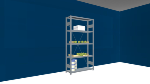 rayonnage de base avec 4 montants, plateaux conf. à l’offre