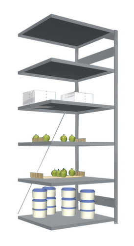 rayonnage suivant avec 2 montants, plateaux conf. à l’offre