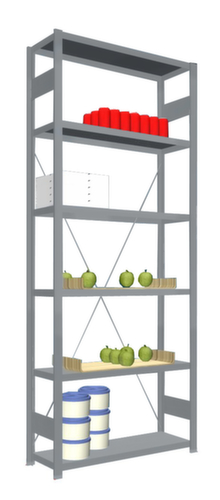 rayonnage de base avec 4 montants, plateaux conf. à l’offre