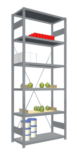 rayonnage de base avec 4 montants, plateaux conf. à l’offre