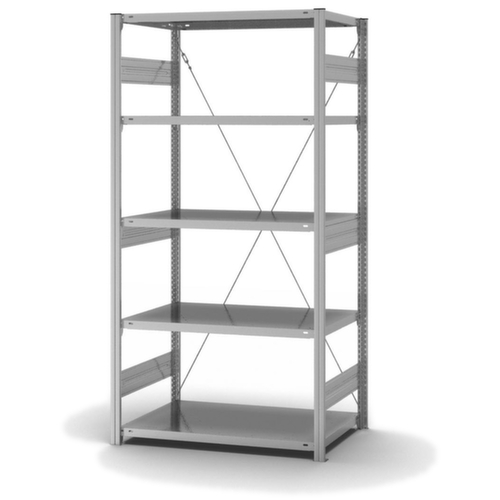 rayonnage de base avec 2 échelles, croisillons et plateaux conf. à l’offre