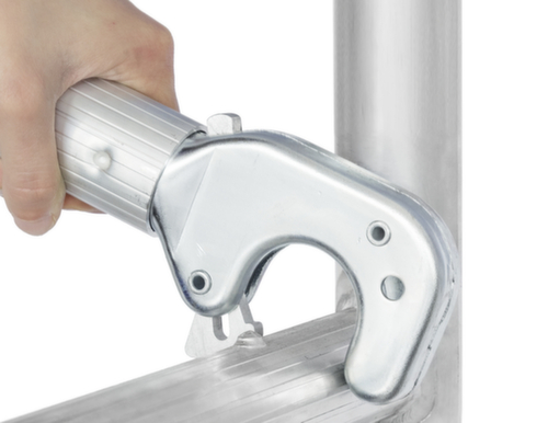 mezzanine modulaire résistante aux intempéries et antidérapante, élévateur HYMER pour faciliter le montage et le démontage des diagonales et des entretoises