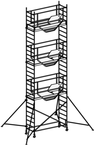 "longDescription": "<h2>Échafaudage roulant ADVANCED SAFE-T</h2><strong>Utilisation variable grâce à la conception modulaire</strong><br><ul><li><strong>Montage rapide</strong> grâce aux fermetures à clic pratiques sur les étais et les traverses diagonales- <strong>Travail sécurisé aussi en extérieur</strong> - mezzanine modulaire avec revêtement antidérapant résistant aux intempéries</li><li><strong>Accès et descente confortables</strong> par la trappe de passage</li><li><strong>Sécurité maximale</strong> grâce à la rambarde périphérique</li><li><strong>Excellente stabilité</strong> grâce aux potences</li><li><strong>Léger et robuste</strong> - construction en aluminium tubulaire soudé</li><li>Chargement de la scène jusqu'à 200 kg</li></ul><h3>Le choix vous appartient :</h3><ul><li><strong>Utilisation mobile ou sur sols irréguliers</strong> - modules combinés, avec 4 roulettes pivotantes à hauteur réglable- <strong>Stabilité accrue</strong> - à partir d'une hauteur de 9,25 m avec potences télescopiques à fermeture à baïonnette</li></ul>",