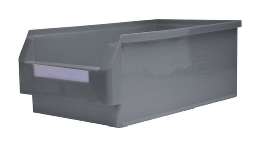 en polyéthylène résistant aux chocs en gris. transport facile grâce à poignée encastrée renforcée. tablettes plein avec renfort grâce à rainures de renfort. avec porte-étiquettes pour une inscription individuelle et claire pour l’inscription. résistant à la température de -40 à +80 °C. facilement empilable avec rebord gerbable gerbable. Adapté aux convoyeurs à rouleaux.