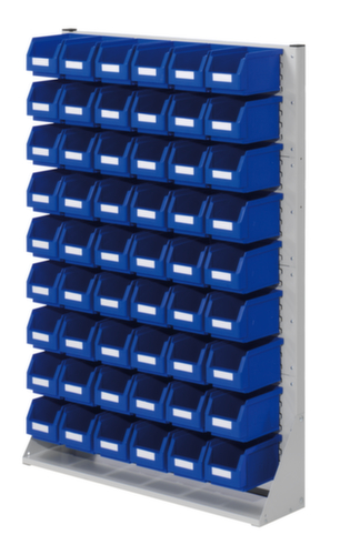 utilisation unilatéral - conçu pour un montage mural. paroi arrière avec plaque à fentes pour accrocher et décrocher les bacs à l’horizontale. structure en acier. montants avec revêtement en plastique résistant à l’usure en RAL7035 gris clair.
